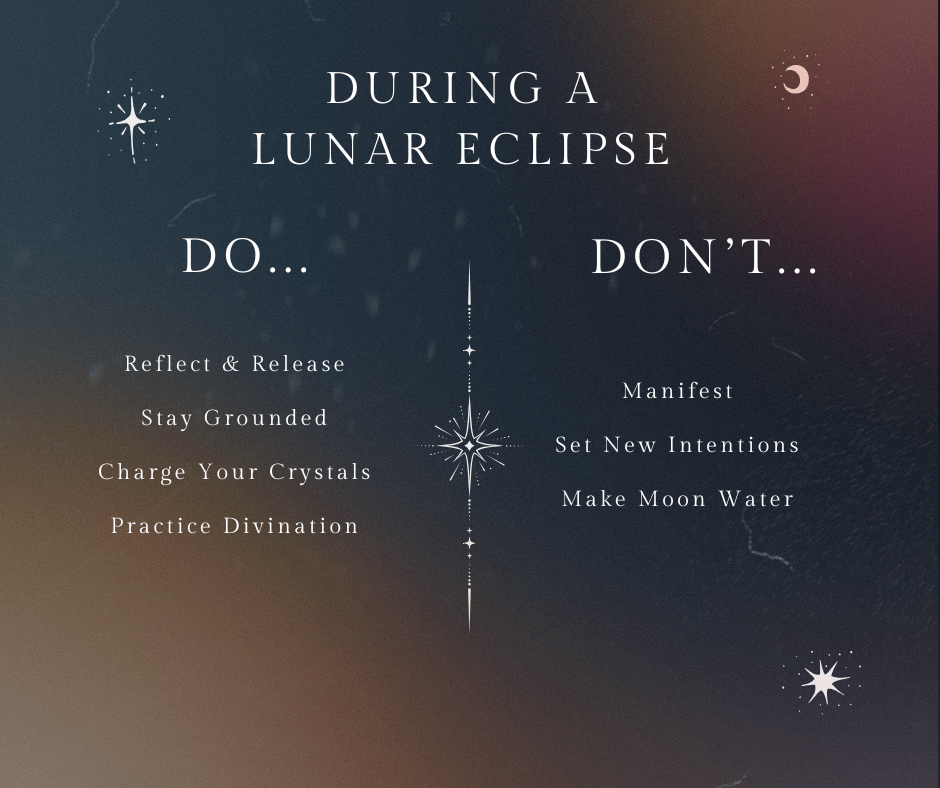• Reflect & Release – Lunar eclipses are all about closure. Write down what you need to let go of and symbolically burn the paper (safely) to release old baggage.