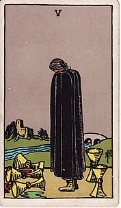 The Five of Cups signals a time of grief or disappointment but also the opportunity for emotional growth.