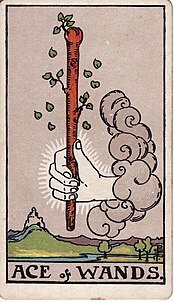 The Ace of Wands is the purest expression of Fire—passion, inspiration, and creative drive.