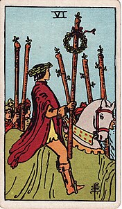 In the Suit of Wands, it signifies the shift from conflict (Five of Wands) to recognition and achievement. It’s the moment where perseverance pays off and progress is acknowledged.
